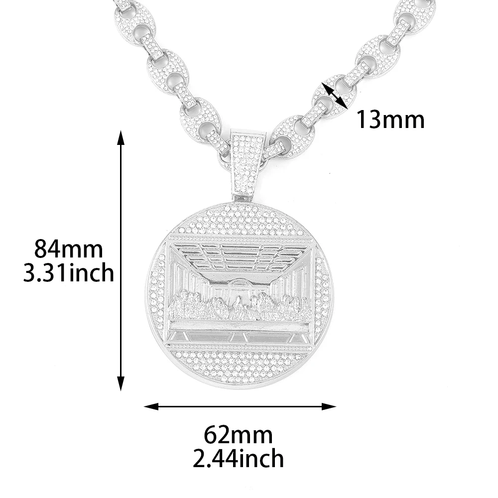 Delicate Shiny Last Supper Pendant Necklace Men's Jewelry Match Iced Out 13mm Cuban Link Fashion Men Hip Hop Style Women Gift