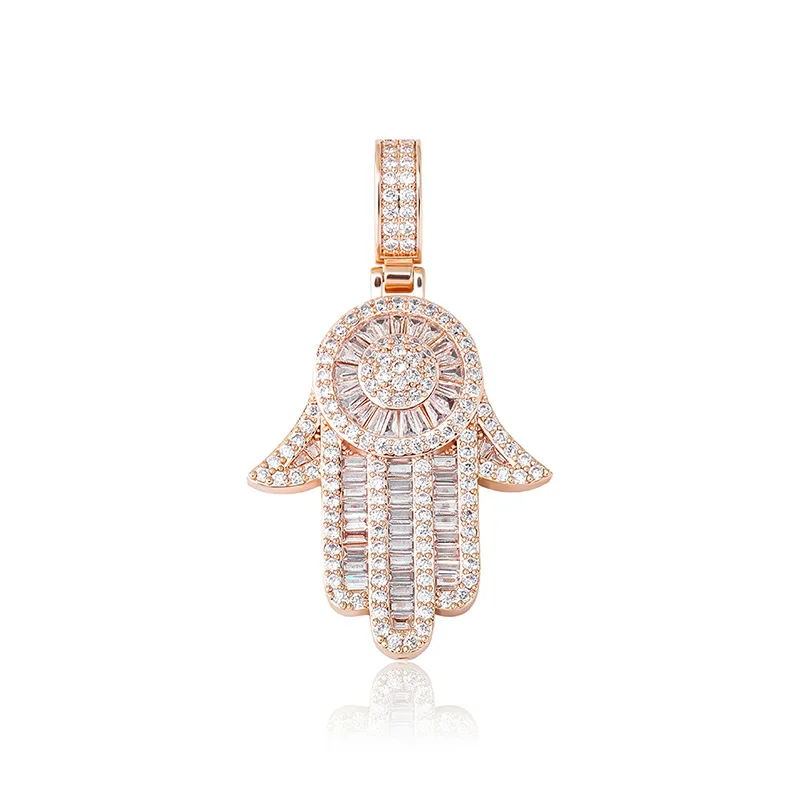 Iced Out Hand of Fatima Pendants Necklaces for Men