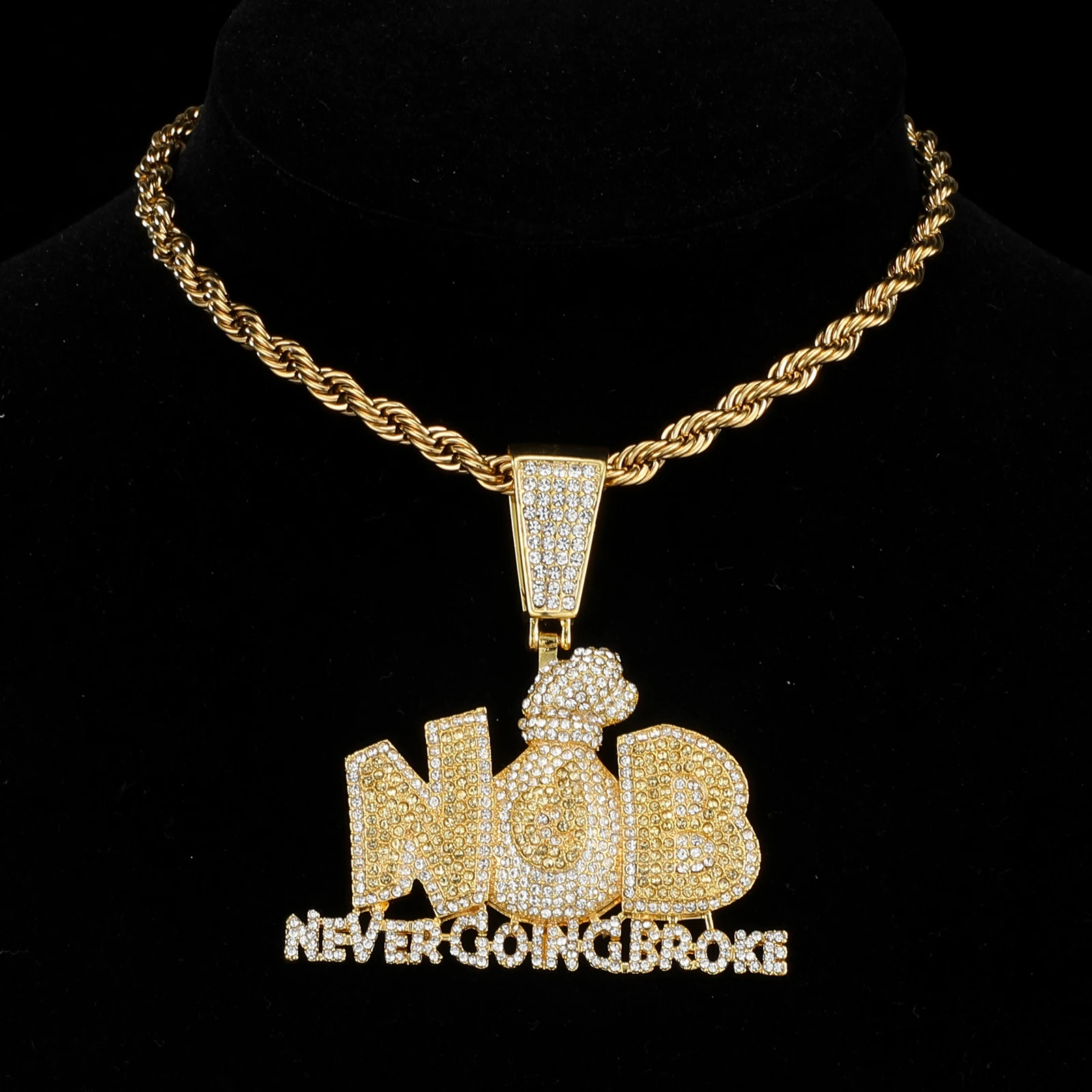 HIP Iced Out Letters Money Bags Pendants With 13mm Cuban Link Chain Rhinestone Necklaces For Men's Women Rapper Jewelry