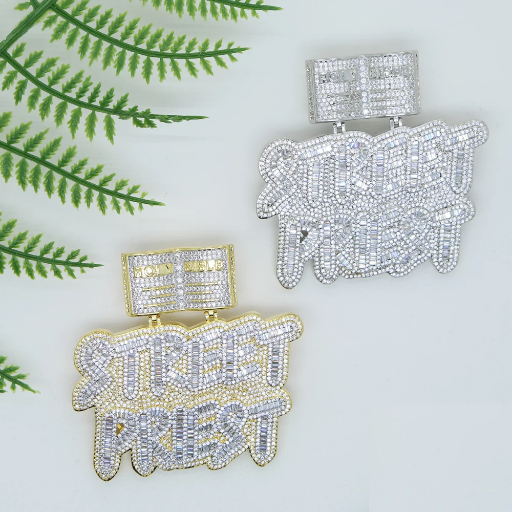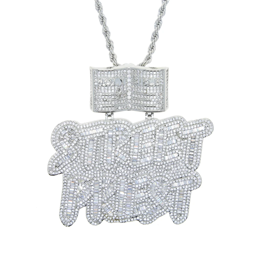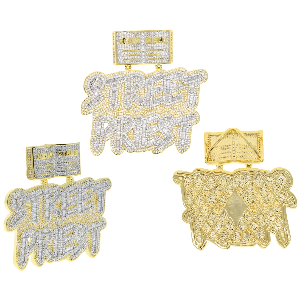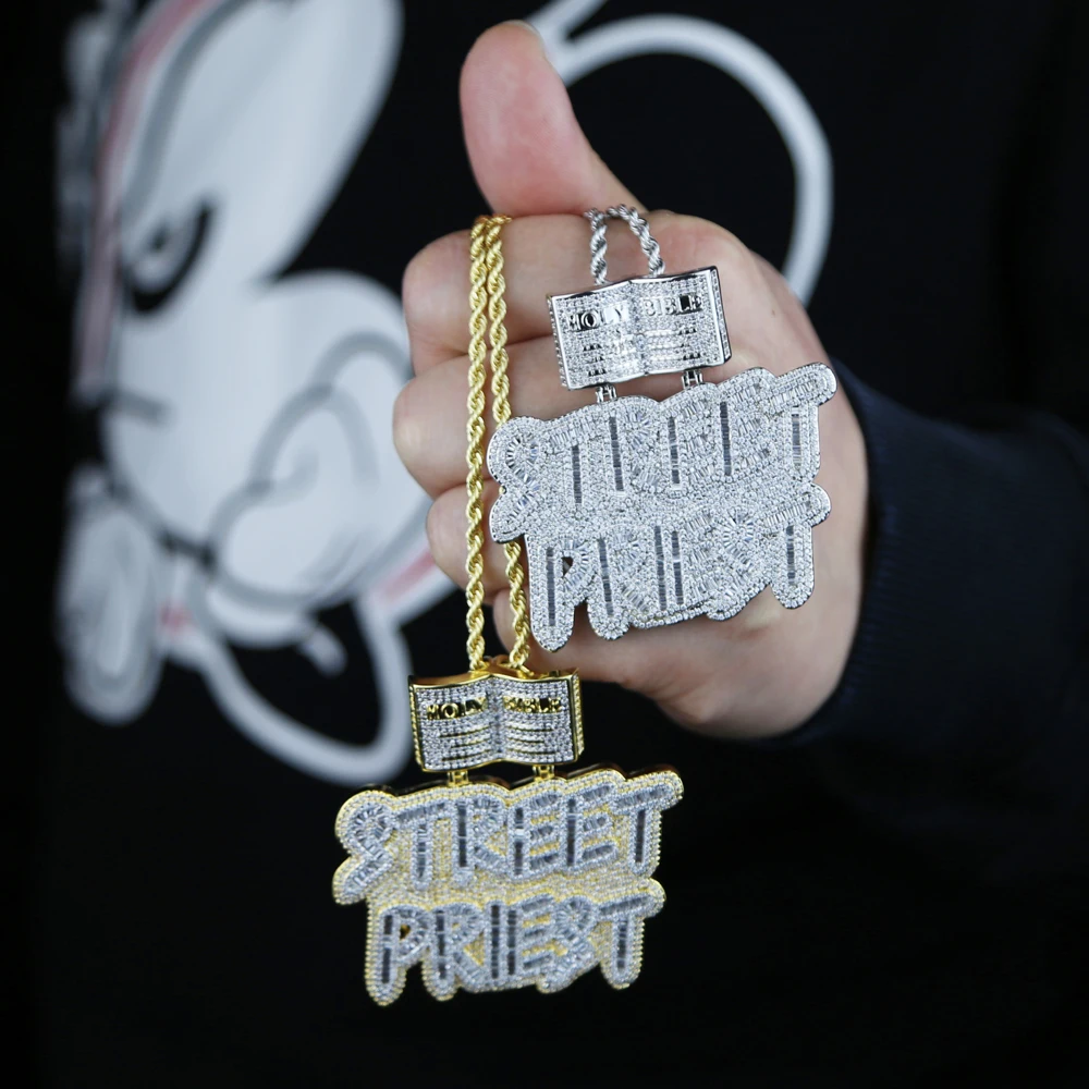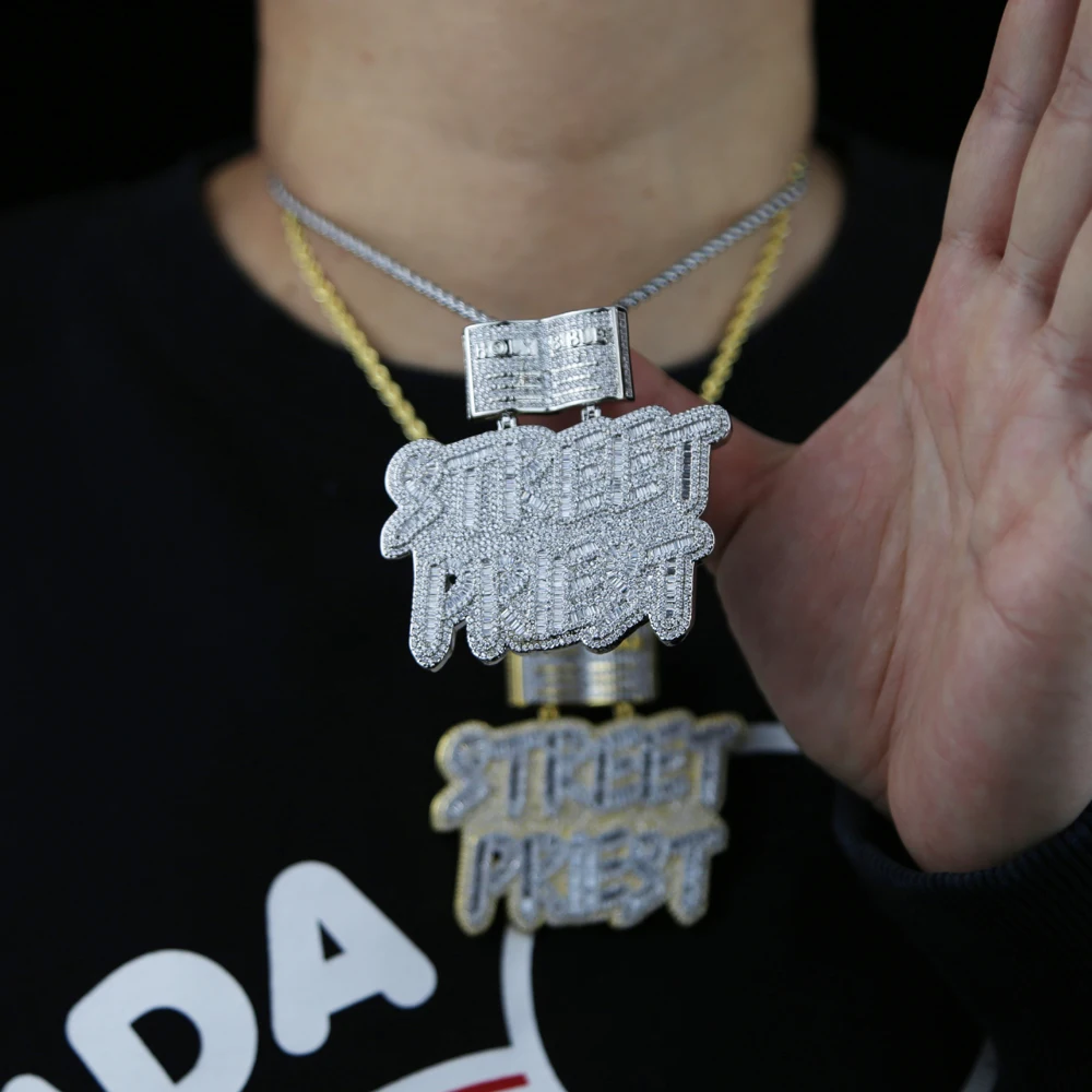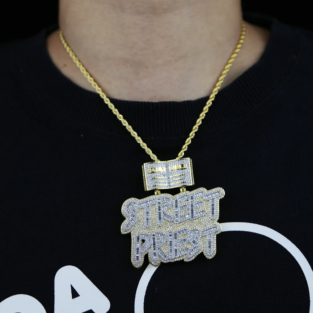 HipHop Inlaid 5A CZ Cubic Zircon Street Priest Letters Pendant Men's Necklace With High Quality Ice Out Bling Rope Chain Jewelry