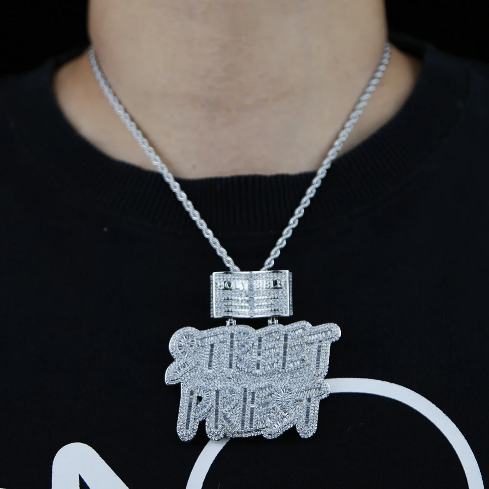 Item Name: HipHop Inlaid 5A CZ Cubic Zircon Street Priest Letters Pendant Men's Necklace With High Quality Ice Out Bling Rope Chain Jewelry